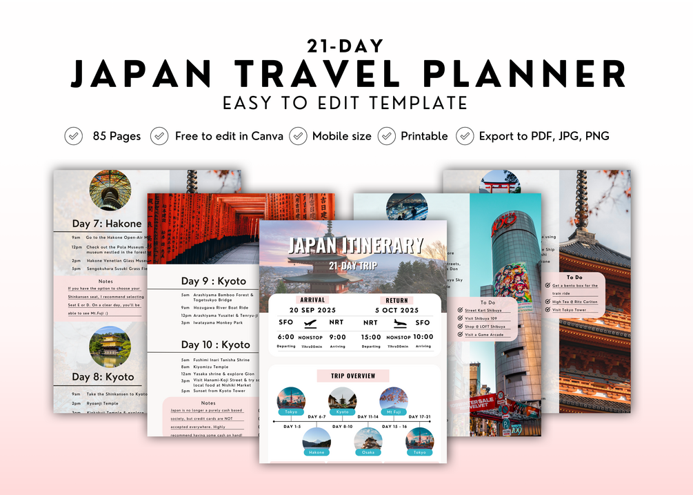 Editable 21-Day Japan Travel Itinerary (Canva)