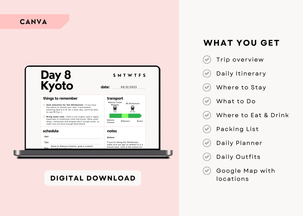 21 Day Japan Travel Itinerary | Digital Download | Ultimate Japan Travel Guide | Desktop, Ipad, Tablet | Editable on Canva